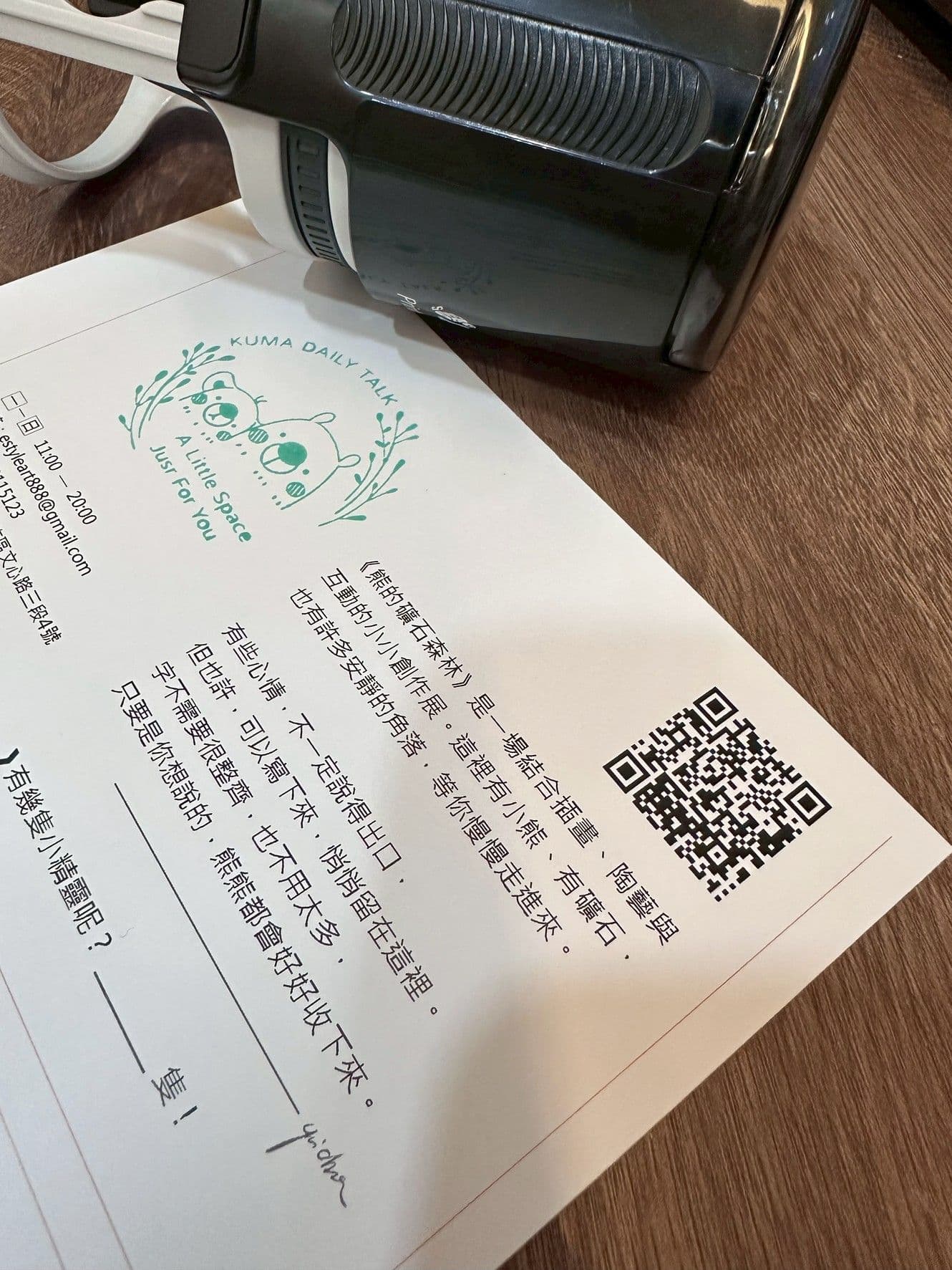 當你走進《Kuma's Ore Forest 熊的礦石森林創作展》,或許會在某一幅畫前駐足,在某一塊礦石旁停留,在某一句話中看見自己。這是一場為心而生的展覽,也是一封寫給每個正在經歷、正在感受、正在尋找的你,靜靜傳遞的信。