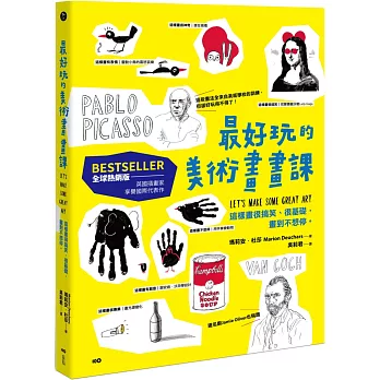 畫畫不一定要嚴肅,這本書告訴你,藝術也可以又簡單又好玩!由英國插畫家 Marion Deuchars 創作,書裡從基本形狀、光影、顏色,到臨摹梵谷、畢卡索、馬格利特的祕技,用牙刷、指紋、撕紙、手電筒等工具來創作,把美術學校的基礎練習變成孩子與大人都愛的遊戲。