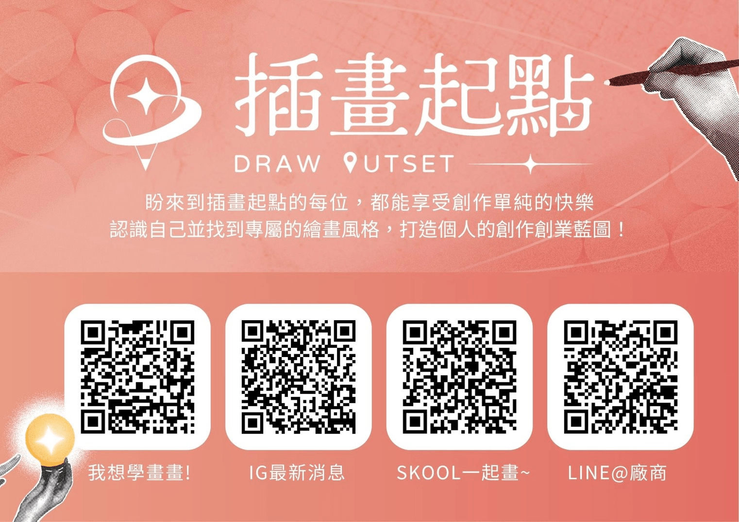插畫起點希望成為創作者的起點、轉折點,甚至是你靈感停滯時的中繼站。你不需要是職業插畫家,才能在這裡落腳。只要你願意相信自己的創作之路,這裡就會一直亮著一盞燈,等你回來。