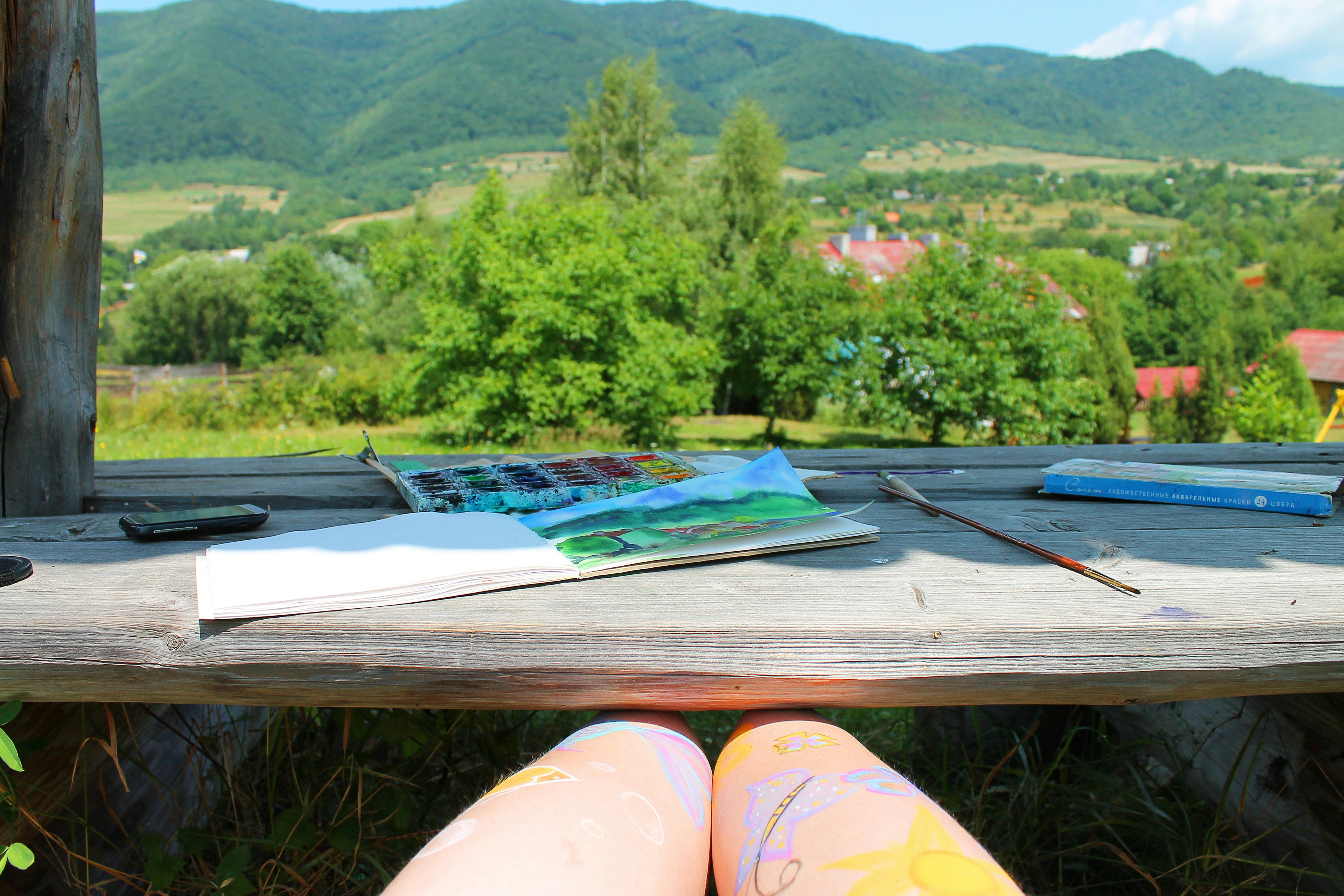穿上喜歡的裙子,帶著畫具、野餐墊,出門吧!可以是去海邊,也可以是城市裡的一個小公園,甚至只是在家附近的陽台也好。找一個陽光輕輕灑落、風溫柔地吹拂的地方,先坐下來,深呼吸,聽聽周圍的聲音。